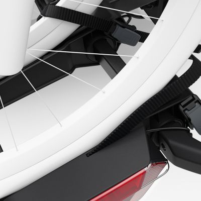 | Штатное место для ремешка колеса позволяет аккуратно убрать ремешки при загрузке велосипедов. Храповые пряжки и ремешки для колес облегчают закрепление шин диаметром до 3" | |
