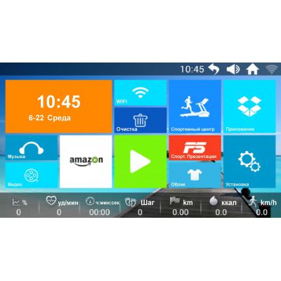 Есть возможность просмотра видео и аудиофайлов через USB или MP3. USB вход, кстати, выполняет еще одну крайне полезную функцию зарядки смартфона. 3 режима Виртуального ландшафта™ позволяют пробежаться по городским и природным локациям. Подключившись через Wi-Fi, можно воспользоваться различными встроенными приложениями – Chrome, Youtube, Facebook, Twitter, Netflix, Spotify, Amazon и Prime Video. Через Wi-Fi подключается и спортивное приложение Fitshow, которое сохраняет всю статистику тренировок. Хотя более интересная и полезная вещь – подключить через Bluetooth смартфона сторонние интегрированные приложения – это сам Fitshow с расширенными возможностями, а также Fithome и Zwift.