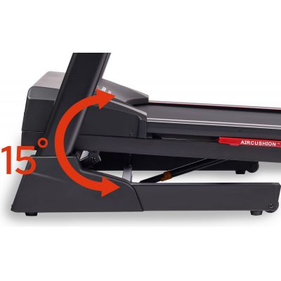 Надежный, двигатель японской Fuji Electric мощностью 3,25 л.с. постоянного тока разгоняет дорожку до 16 км/ч. Размер бегового полотна 138х46 см. Электрически изменяемый угол наклона от 0 до 15% . За качество скольжения отвечает многослойное полотно NНT-218 толщиной 1,8 мм. швейцарского бренда Habasit и парафинированная дека толщиной 18 мм. В дорожку установлена одна и самых передовых амортизационных платформ – здесь работает связка из 4-ех полиуретан-гелиевых амортизаторов air-CUSHION™ и 4-ех полноразмерных динамических эластомеров VCS™ профессионального уровня.