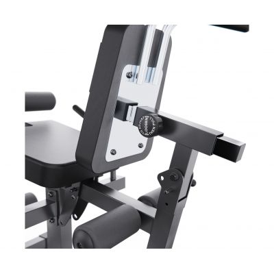 Индивидуальная настройка тренажера обеспечивает максимальный комфорт и эффективность. Большой диск для регулировки угла наклона руки и ноги имеет 24 уровня, а меньший диск для регулировки голеностопного ролика - 18 уровней. Регулируемые валики (6 уровней), спинка с регулировкой по длине и углу наклона, настраиваемое сиденье позволяют адаптировать тренажер под любые параметры пользователя. Это особенно важно для безопасного выполнения упражнений в домашних условиях.