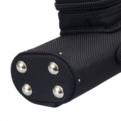 На дне с внешней стороны тубуса имеются ножки из стали. Вы можете ставить тубус на пол, не боясь испачкать или затереть материал. Благодаря ножкам, чехол устойчив в вертикальном положении.